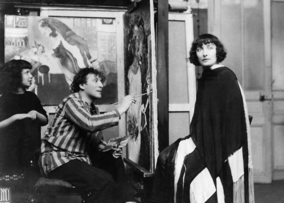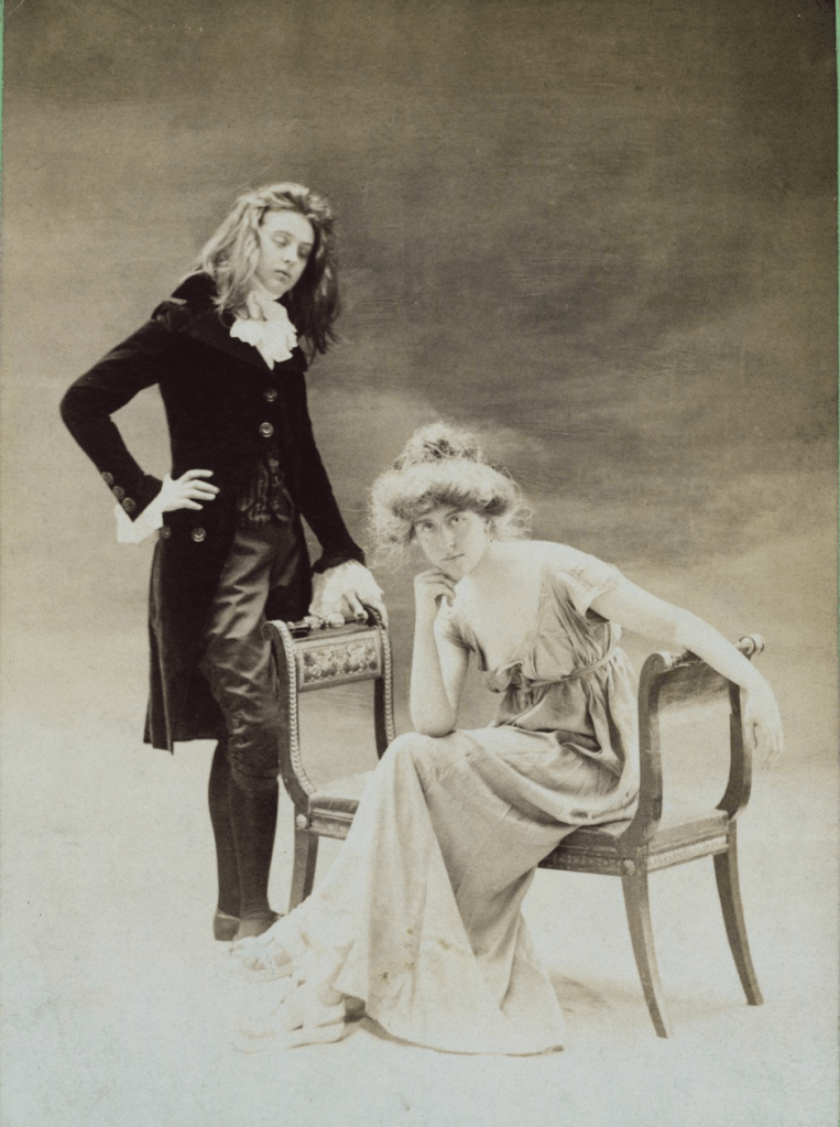 Theda Bara in publicity still for film A Fool There Was, 1915Theda Bara in publicity still for film A Fool There Was, 1915Renee Vivien and Natalie Clifford Barney, undated (c 1900?), photographThe queen of the Mi-Carême parade on her float, 1921.Marc Chagall paints his wife, Bella (née Rosenfeld), at his Paris atelier as his daughter, Ida, watches on. Behind him is Birthday.Liane de Pougy, 1903, photograph Renee Vivien, 1901